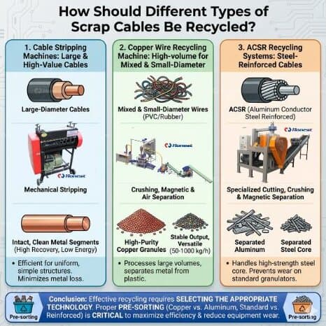 Scrap cable recycling is not a uniform process. Different cable structures, conductor materials, and reinforcement designs require different recycling technologies. Selecting the appropriate recycling method is critical to maximising metal recovery rates, protecting processing equipment, and reducing operating costs. In…