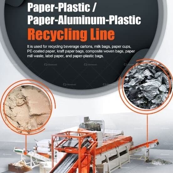 This recycling line is designed for processing beverage cartons, milk bags, paper cups, PE-coated paper, kraft bags, composite woven bags, papermill waste, label paper, and other paper-plastic composites. It efficiently separates paper fibers from plastics and aluminum to maximize material…